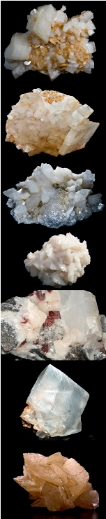rhombohedral crystals with curved faces. Dolomite produces a very weak